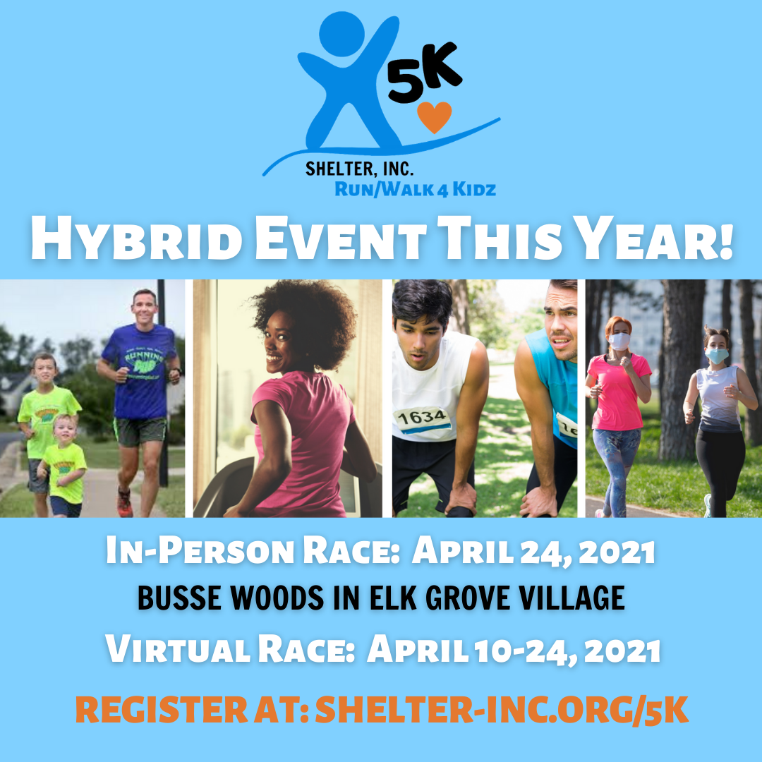 | |  | DOUBLE YOUR IMPACT! Register for the 5K or make a donation from April 18-24 and Shelter's Board will match your contribution dollar for dollar up to $2000! |